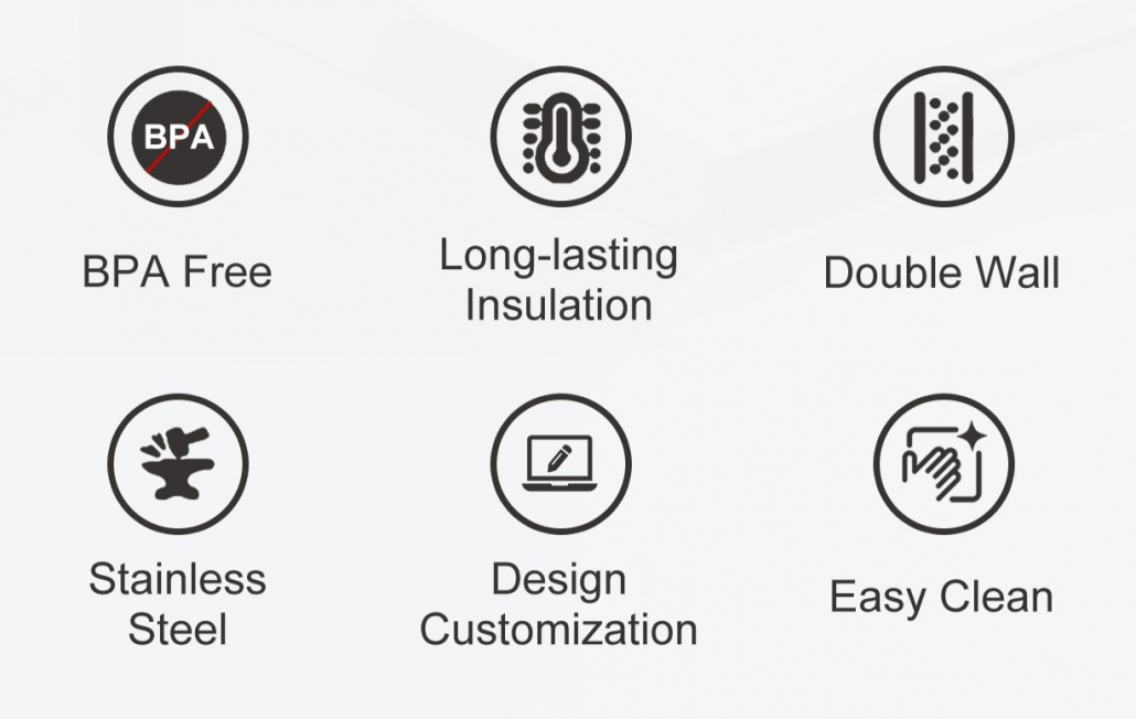 Intérieur en acier inoxydable 304 de qualité alimentaire et extérieur en acier inoxydable 201 avec revêtement en poudre noire. Durable, hygiénique et résistant à un usage quotidien. - Double paroi isolante